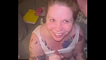 Una milf pelirroja gordita se atraganta con una BWC y recibe un facial 2 min