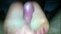 Mi novia me hace una paja con los pies con final feliz. 3 min