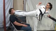 Frances Marino needed a face on which demonstrate proper form and accuracy of her kicks.
