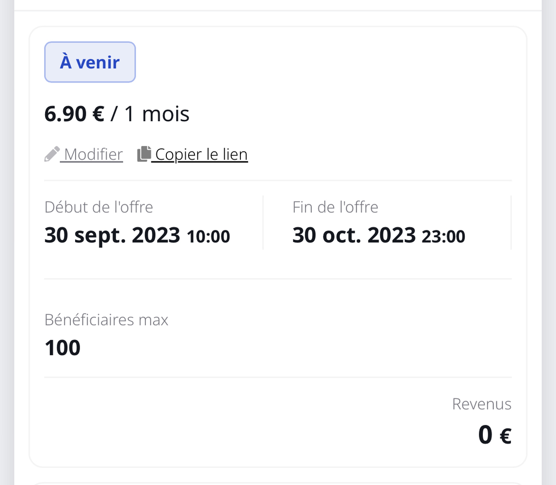 Hello tu va bien ? Voici le lien de promotion pour ton abonnement au mois ...
