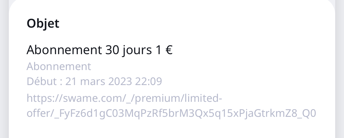 Abonnement pendant 1 mois à mon compte à seulement 3€ swame.com/_/premium...