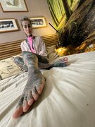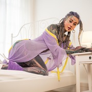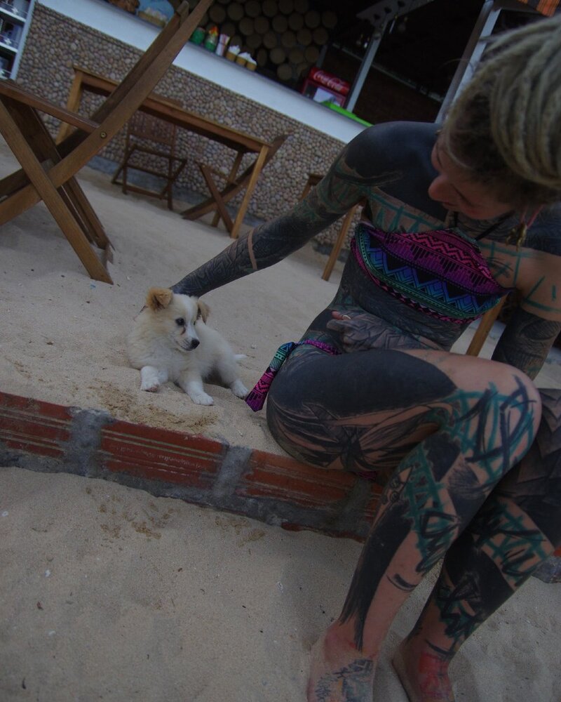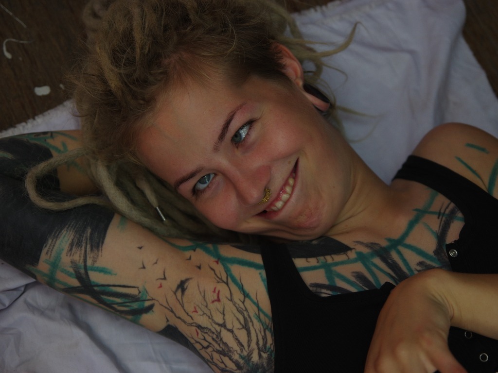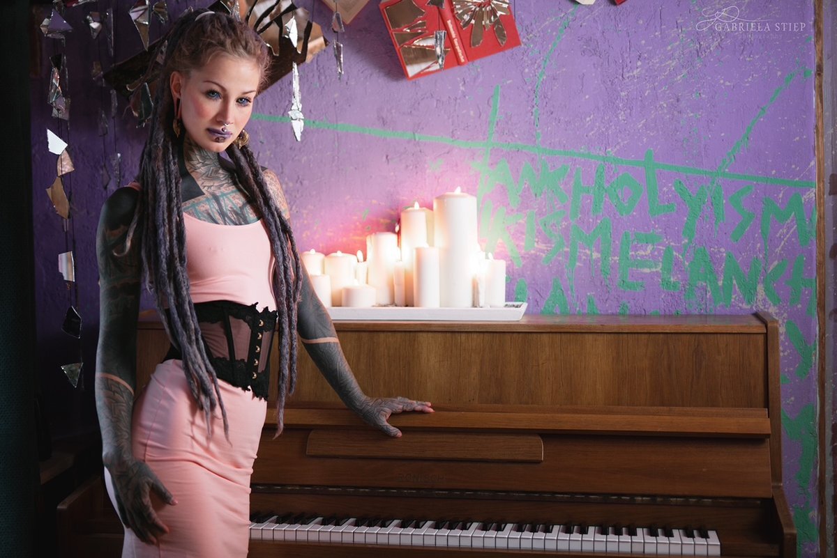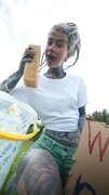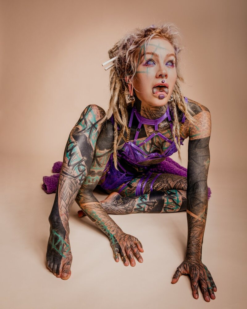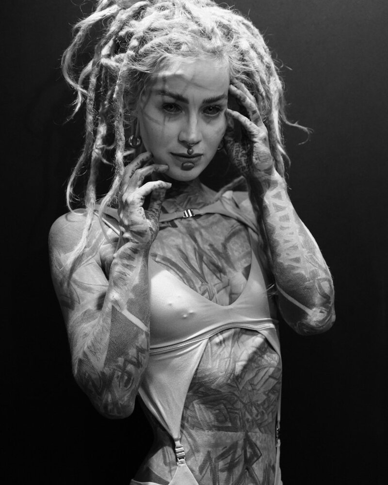 A heavily tattooed alternative dreadhead.