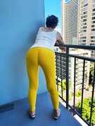 In my new yellow pants enjoying my hotel room before my gentleman caller arrives.