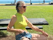 Enjoying a relaxing moment at the park -- oh, wait -- my pants just fell down.
