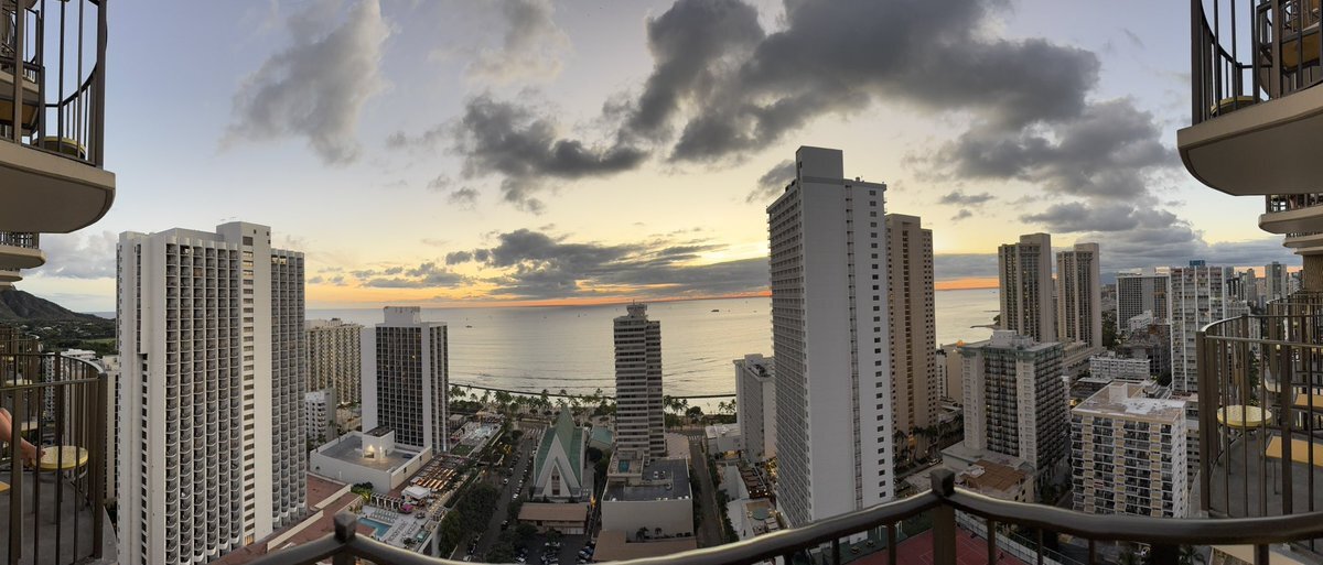 Golden Hour with a beautiful view from our hotel balcony on the 23rd floor.