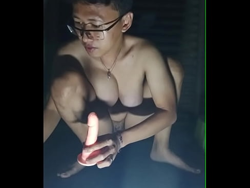 Travesti masturbándose analmente en la noche oscura